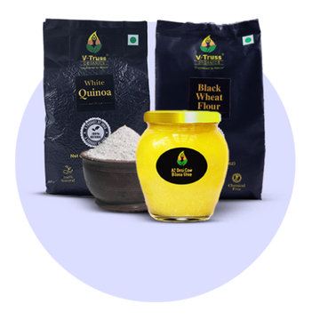 When you choose V-Truss Organics, you are choosing products that are crafted with the utmost care, adhering to the highest international benchmarks of quality and trust. V-Truss Organics, is committed to transparency and integrity in our products and processes. That's why we proudly display our certifications, including RSOCA, India Organic, ISO 9001:2015, ISO 22000:2018, Kosher, and USFDA. These certifications reflect our dedication to meeting the highest standards of quality, safety, and sustainability.