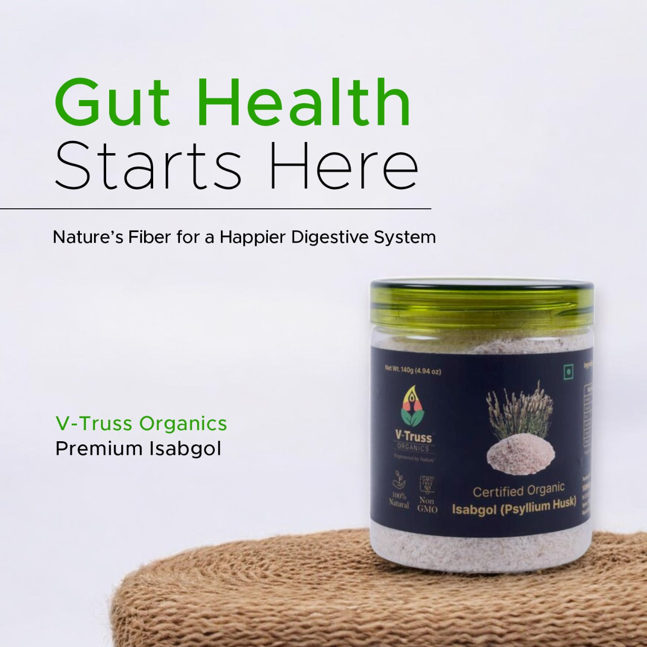 Experience the power of nature with V-Truss Organics Premium Psyllium Husk (Isabgol), a natural fiber supplement that promotes gut health, supports digestion and aids in detoxification. Our psyllium husk is 100% organic, gluten-free and packed with soluble fiber to improve overall well-being.