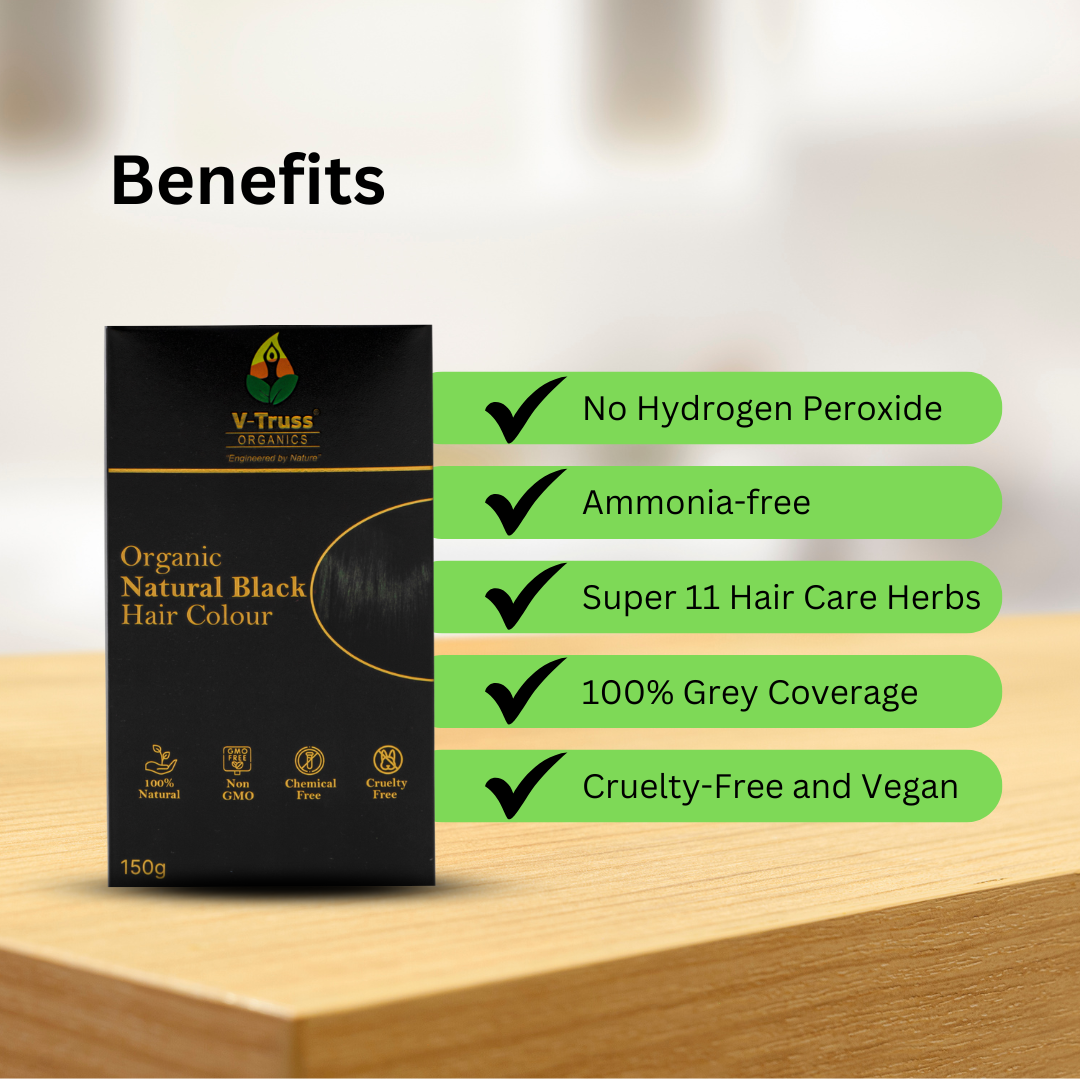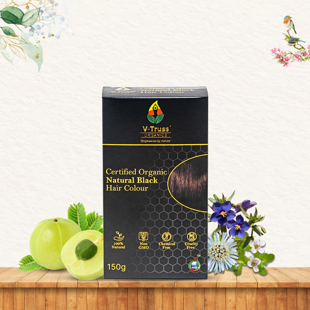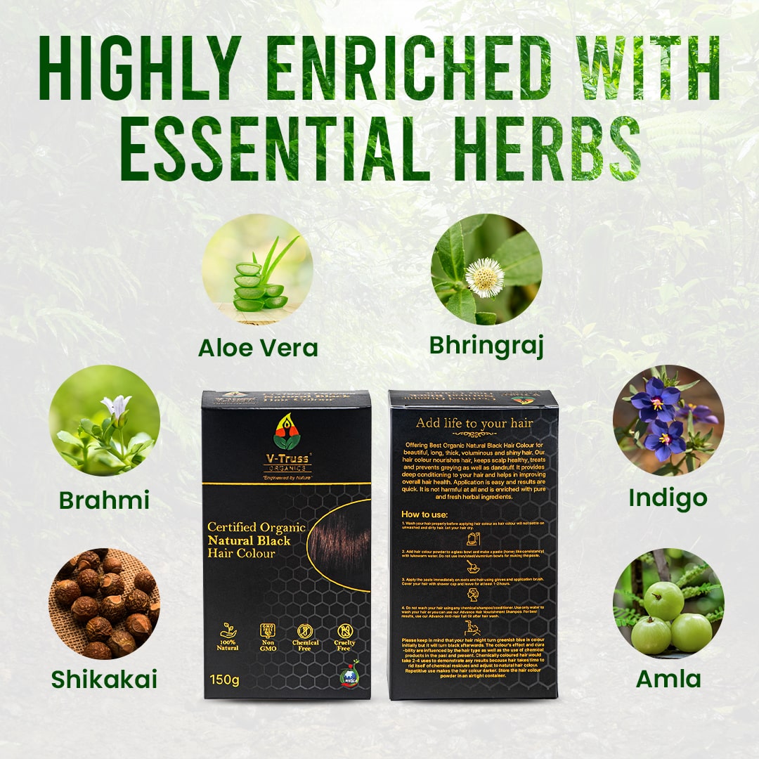 V-Truss Organic Natural Black Hair Colour is 100% Natural, Organic, Chemical Free and Cruelty Free.