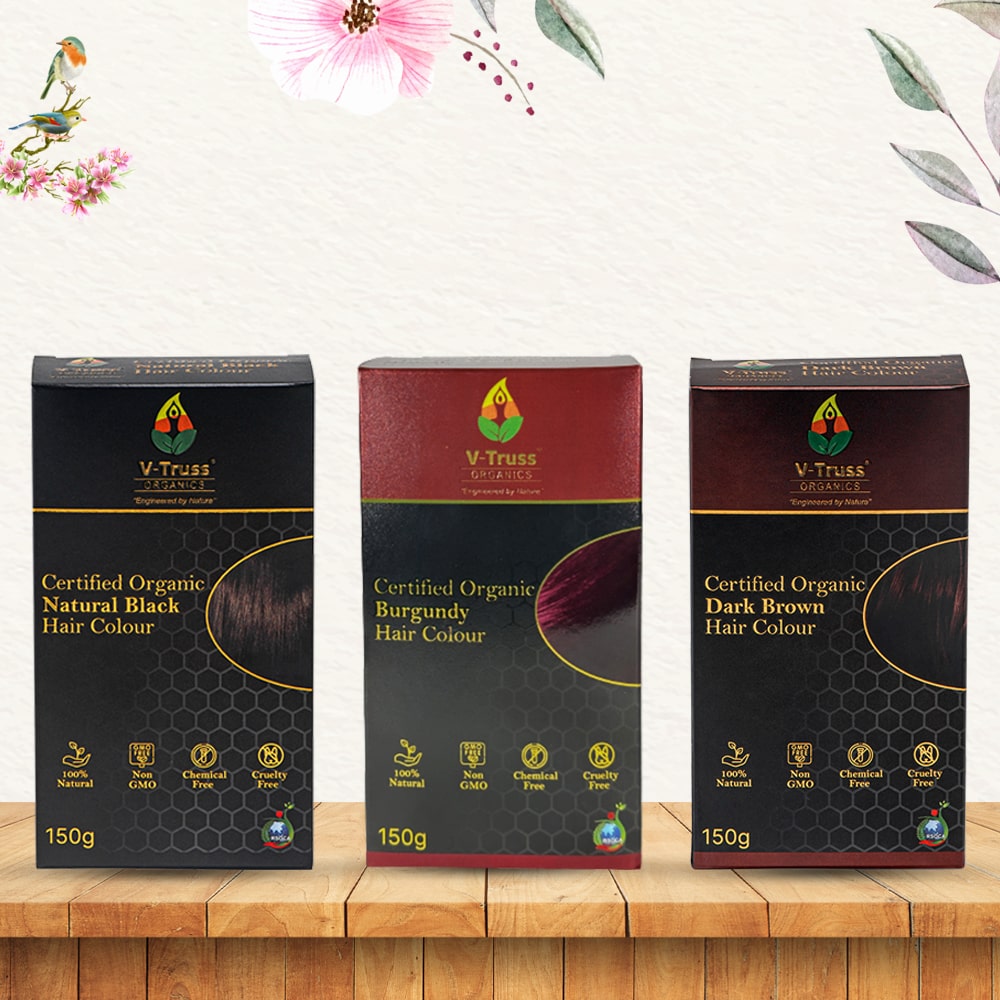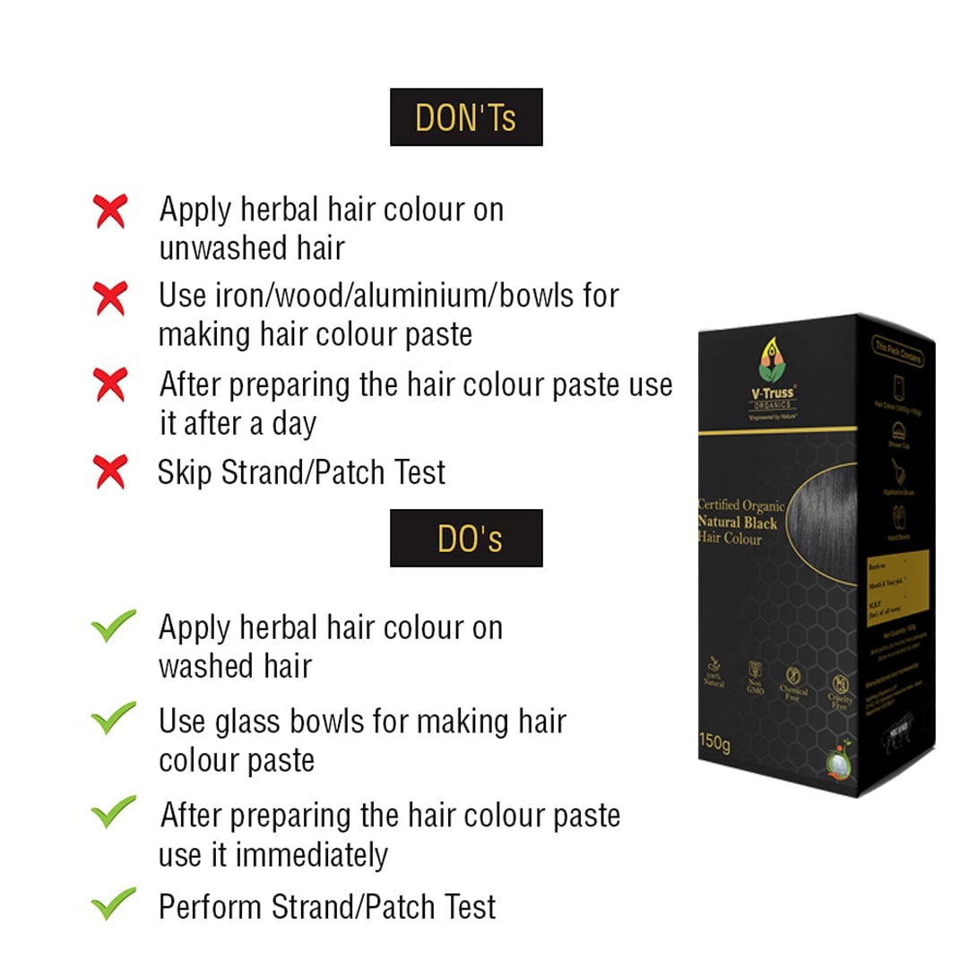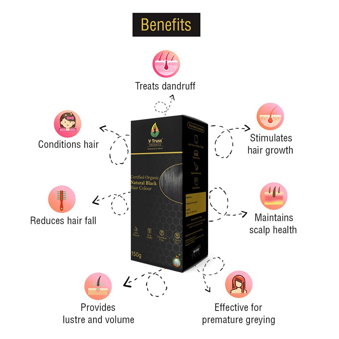 V-Truss Organic Natural Black Hair Colour is 100% Natural, Organic, Chemical Free and Cruelty Free.